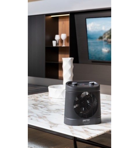 Imetec Silent Power Comfort. Typ: Elektrischer Raumheizlüfter, Kabellänge: 1,3 m, Internationale Schutzart (IP-Code): IP20. Geeignet für: Indoor, Platzierungsoptionen: Flur, Tisch, Produktfarbe: Schwarz. Heizleistung: 2100 W. AC Eingangsspannung: 220 - 240 V, AC Eingangsfrequenz: 50 Hz. Breite: 168 mm, Tiefe: 250 mm, Höhe: 300 mm