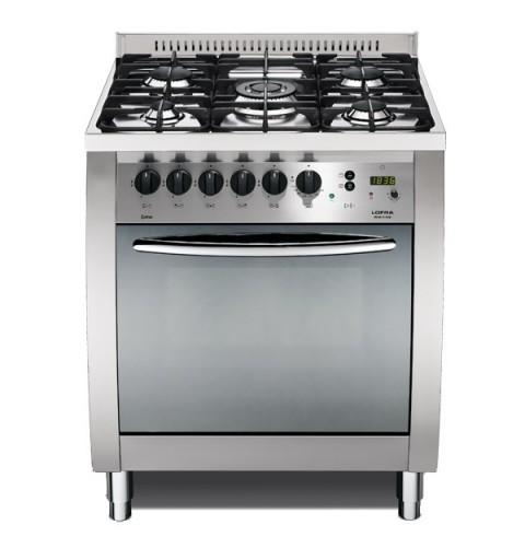 Lofra C76GV/C. Produkttyp: Freistehender Kocher, Produktfarbe: Edelstahl, Kontrolltyp: Rotation. Kochfeldtyp: Gaskochfeld, Wokbrennerposition: Mittel, Pfannenträgermaterial: Eisenguss. Ofengröße: Medium, Stromquelle Ofen: Electric,Natural gas, Bruttorauminhalt Ofen: 66 l. Energie-Effizienzklasse: A, Energieverbrauch (konventionell): 1,74 kWh. Breite: 700 mm, Tiefe: 600 mm, Höhe: 905 mm