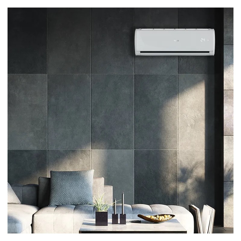 Monosplit-Klimaanlagen-Set HAS09TAB bestehend aus dem Innengerät HAS09TABIN mit Fernbedienung und dem Außengerät H1U09TABOUT – 9000 Btu/h (2,6 kW) – Inverter – Energieeffizienzklasse im Kühlbetrieb: A++ und im Heizbetrieb: A+ – Kältemittel R32 – WiFi