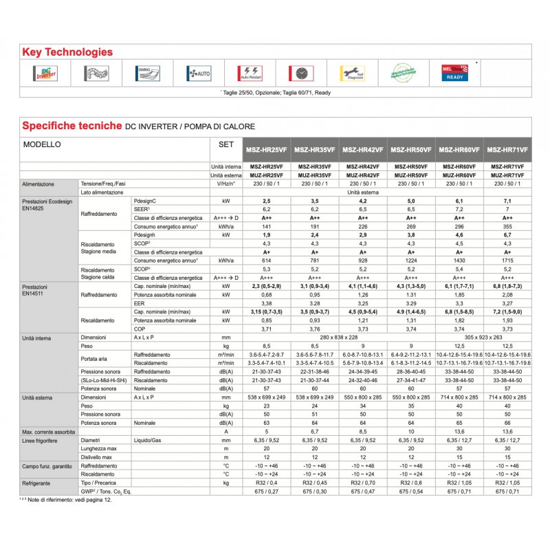 MITSUBISHI MSZ-HR25VFE Kit MUZ-HR25VF + MSZ-HR25VFE1 Klimaanlage 9000 Btu 2,5 kW Inverter A++/A+ SMART HR R32