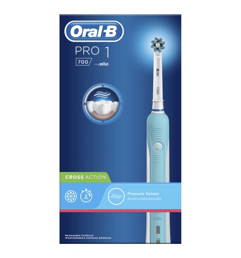 Oral-B PRO 700 CrossAction, Erwachsener, Rotierende-vibrierende Zahnbürste, Tägliche Pflege, Blau, Weiß, Akku, Eingebaut