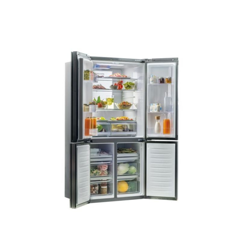Haier HTF-710DP7. Geräteplatzierung: Freistehend, Produktdesign: French door, Produktfarbe: Edelstahl. Nutzinhalt Gesamteinheit: 628 l, Lärmemissionsklasse: C, Geräuschpegel: 40 dB. Nutzinhalt Kühlschrank: 428 l, Bruttokapazität Kühlschrank: 470 l. Nutzinhalt Gefrierfach: 200 l, Gefrierfachposition: Unten, Gefrierkapazität: 10 kg/24h. Energieeffizienzklasse: F, Jährlicher Energieverbrauch: 430 kWh, Energieeffizienzskala: A bis G