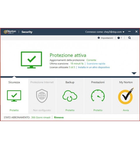 Norton 360 Deluxe offre una potente protezione potenti per i tuoi dispositivi e la tua privacy online – tutto in un'unica soluzione. I tuoi PC, Mac®, tablet e smartphone vengono protetti da virus, ransomware, phishing e altre minacce online mentre effettui transazioni bancarie, fai acquisti e navighi online.