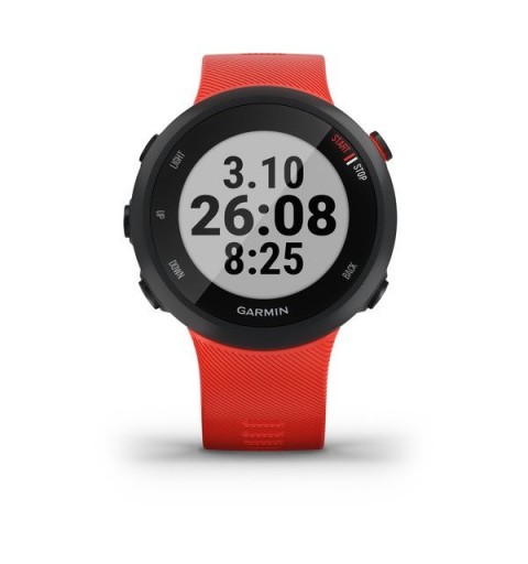 Garmin Forerunner 45. Bildschirmdiagonale: 2,64 cm (1.04 Zoll), Bildschirmauflösung: 208 x 208 Pixel. GPS. Gewicht: 36 g. Bandmaterial: Silikon, Armbandfarbe: Rot