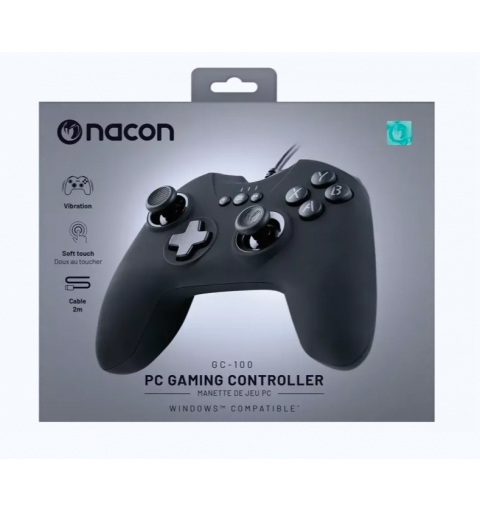 NACON PCGC-100XF. Gerätetyp: Gamepad, Gamingplattformen unterstützt: PC, Gaming-Control Funktionsknöpfe: Schaltfläche Zurück, D-Pad, Home button, Modus-Taste, Schaltfläche Start. Übertragungstechnik: Verkabelt, Geräteschnittstelle: USB. Produktfarbe: Schwarz, Kabellänge: 2 m. Unterstützt Windows-Betriebssysteme: Windows 10 Education,Windows 10 Education x64,Windows 10 Enterprise,Windows 10 Enterprise.... Breite: 110 mm, Tiefe: 60 mm, Höhe: 152 mm