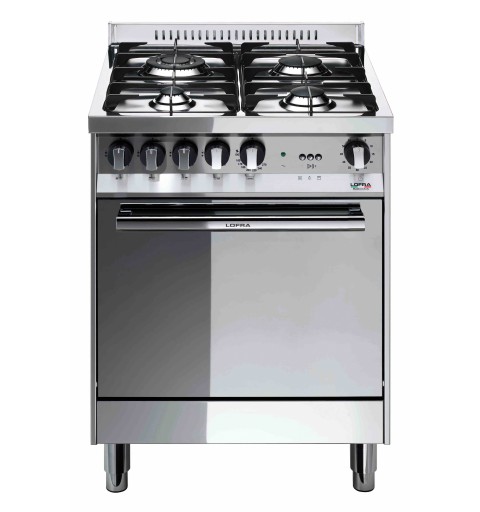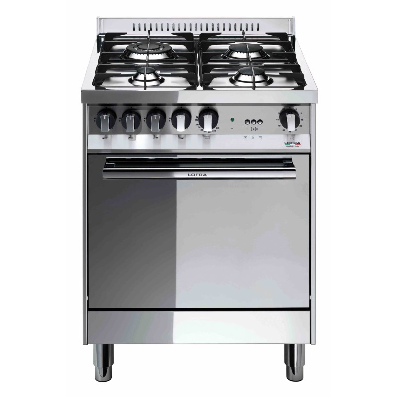 Lofra M66GV/C. Product type: Freestanding cooker, Colour of product: Stainless steel, Control type: Rotary. Hob type: Gas, Top surface type: Stainless steel, Pan support material: Cast iron. Oven size: Medium, Oven power source: Gas, Oven gross capacity: 66 L. Timer type: Mechanical. Energy efficiency class: A, Energy consumption (conventional): 1.74 kWh