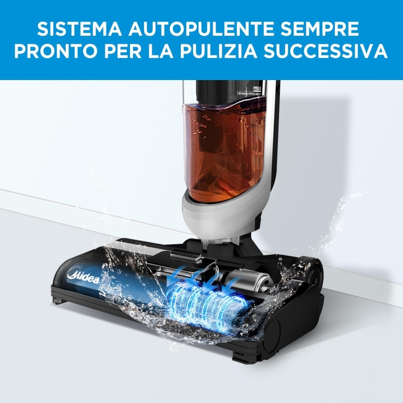 Midea MWD-X6. Product type: 2-in-1 stick vacuum, Dust container type: Bagless, Product colour: Black, Blue. Cleaning type: Dry&wet, Warranty period: 1 year(s). Power source: Battery, Maximum input power: 190 W, Battery capacity: 2.5 Ah. Width: 305 mm, Depth: 220 mm, Height: 870 mm