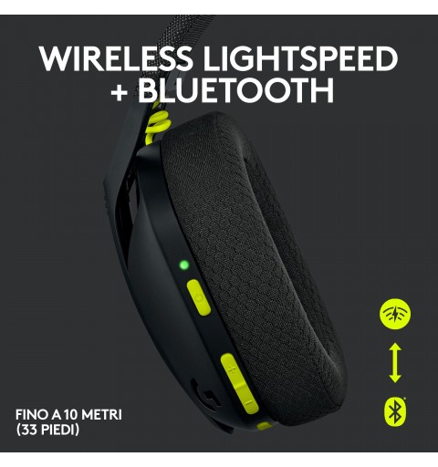 Logitech G G435 LIGHTSPEED Wireless Gaming Headset, Headset, Head-band, Gaming, Black, Binaural, Mute, Volume +, Volume -