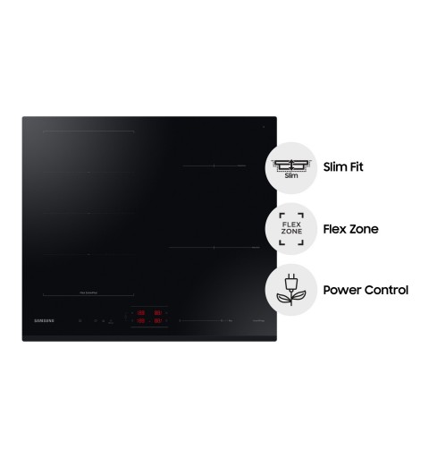 Samsung NZ64B5045GK, Black, Built-in, 60 cm, Zone induction hob, Glass-ceramic, 4 zone(s)