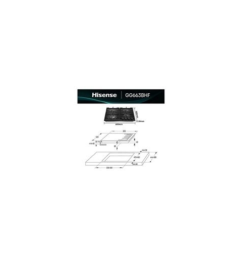 Hisense GG663BHF 60cm Gas on Gas Hob - Black, Black, Built-in, 60 cm, Gas, 4 zone(s), 4 zone(s)