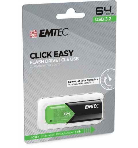 Emtec Click Easy, 64 GB, USB Type-A, 3.2 Gen 1 (3.1 Gen 1), Capless, Black, Green
