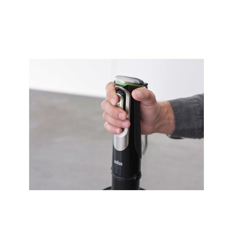 Braun’s most powerful 1200W highly efficient motor. Up to 6 times finer blending result¹ and 60% faster performance² for tastier, smoother results with no unwanted pieces. With the worlds first ActiveBlade metal wand the blade moves up and down blend even the hardest foods .Advanced SmartSpeed The more you squeeze the more power you get. Featuring an extra-large control button for better handling and comfort. SPLASHControl technology Improved anti-splash for cleaner kitchens.