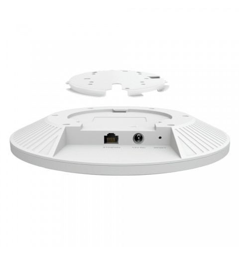 TP-Link Omada AX5400 Ceiling Mount WiFi 6 Access Point. Maximum data transfer rate: 5400 Mbit/s, Maximum data transfer rate (2.4 GHz): 574 Mbit/s, Maximum data transfer rate (5 GHz): 4804 Mbit/s. Security algorithms: SNMP, SNMPv2, SNMPv3, WPA-Enterprise, WPA-Personal, WPA2-Enterprise, WPA2-Personal, WPA3-Enterprise. DC voltage range: 12 V. Placement: Ceiling, Wall, Product colour: White. Antenna type: Internal