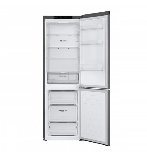 LG GBP61DSPGN. Total net capacity: 341 L. Door hinge: Right, Display type: LED. Climate class: SN-T, Noise level: 35 dB. Fridge net capacity: 234 L, No Frost (fridge), Multi-Airflow system (fridge), Fridge interior light. Freezer net capacity: 107 L, Freezing capacity: 10 kg/24h, No Frost (freezer). Energy efficiency class: D, Annual energy consumption: 214 kWh. Product colour: Graphite