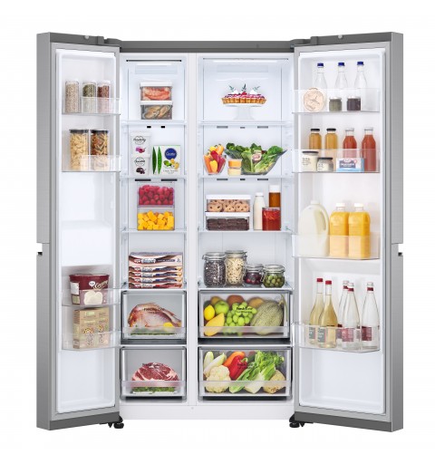LG GSBV70PZTE. Appliance placement: Freestanding, Product design: American door, Product colour: Stainless steel. Total net capacity: 655 L, Climate class: T, Noise emission class: C. Fridge net capacity: 416 L, Lamp type: LED. Freezer net capacity: 239 L, Freezer position: Side-placed, Freezing capacity: 12 kg/24h. Energy efficiency class: E, Annual energy consumption: 352 kWh, Energy efficiency scale: A to G