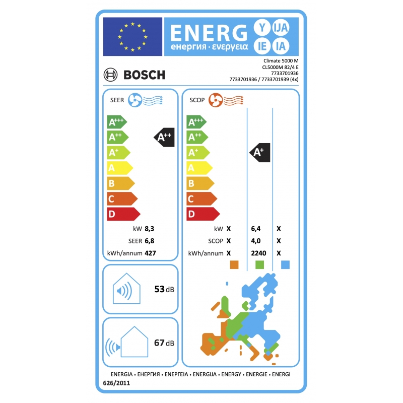- Energy efficiency class A++ in cooling and A+ in heating