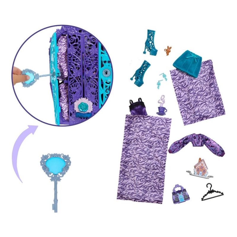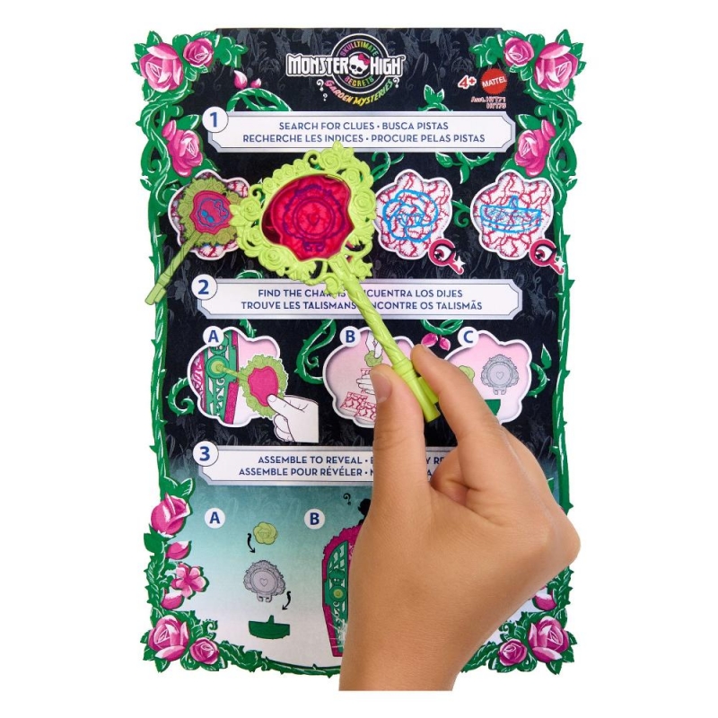 Solve the mystery, unlock the gates of Monster High, and reveal a Monster High doll with Skulltimate Secrets: Garden Mysteries! Kids can play spooky detective by searching for clues on the map with the 'magic' magnifying glass key. Along the way they'll discover 19+ suprises for an extraordin-eerie unboxing experience! Once playtime is over, kids ages 4 years old and up can stow the included doll, clothing, and accessories inside the creeperific closet, which is perfect for both storytelling and storage! Each sold separately, subject to availability. Fully articulated. Dolls cannot stand alone. Colours and decorations may vary.