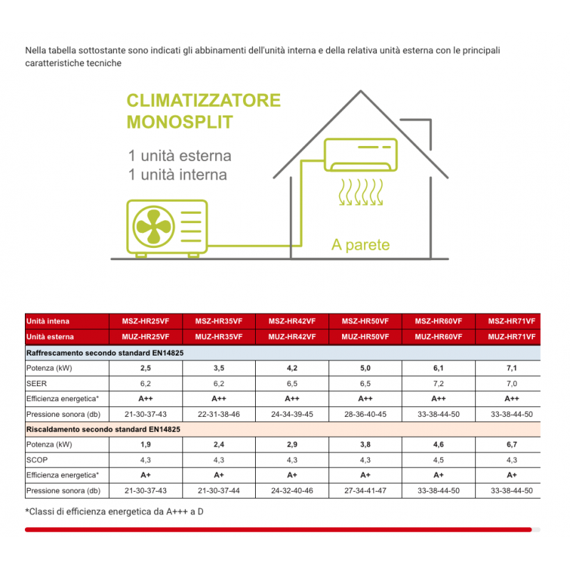 MITSUBISHI MSZ-HR25VFE Kit MUZ-HR25VF + MSZ-HR25VFE1 Air Conditioner 9000 Btu 2.5 kW Inverter A++/A+ SMART HR R32