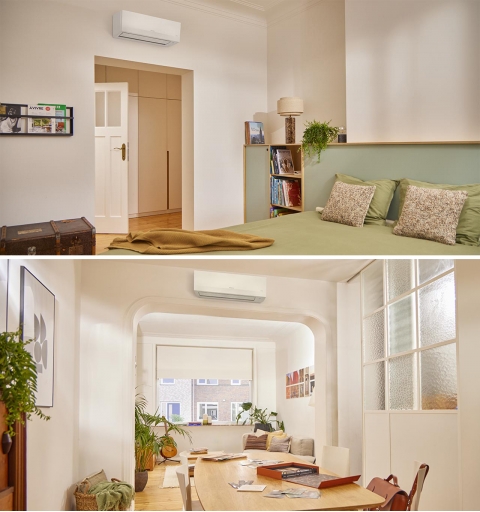 The flat and elegant front panel easily harmonizes with any type of decor and is easier to clean. The integrated Wi-Fi allows control of the indoor unit from anywhere via app, local network, or the Internet. Seasonal efficiency values up to class A++ in cooling. Choosing a product with R-32 reduces environmental impact by 68% compared to R-410A systems and results in a direct reduction in energy consumption thanks to high energy efficiency.