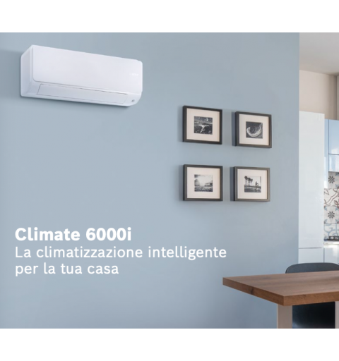 The Bosch Climate 6000i CL6001i-SET35WE is a wall-mounted monosplit air conditioner with Inverter technology and R32 refrigerant, designed to ensure high performance in cooling and heating with optimized consumption.