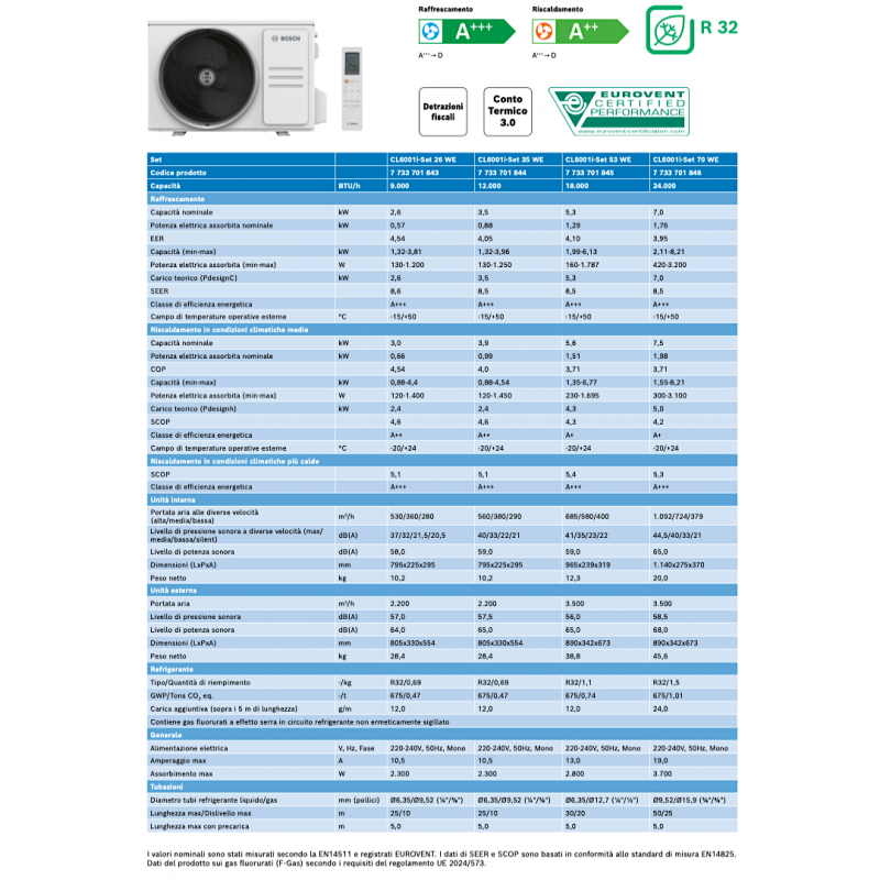 BOSCH Climate 6000i CL6001i-Set 35 WE Air Conditioner Monosplit 12000btu 3.5Kw A+++/A++ WiFi Ready R32