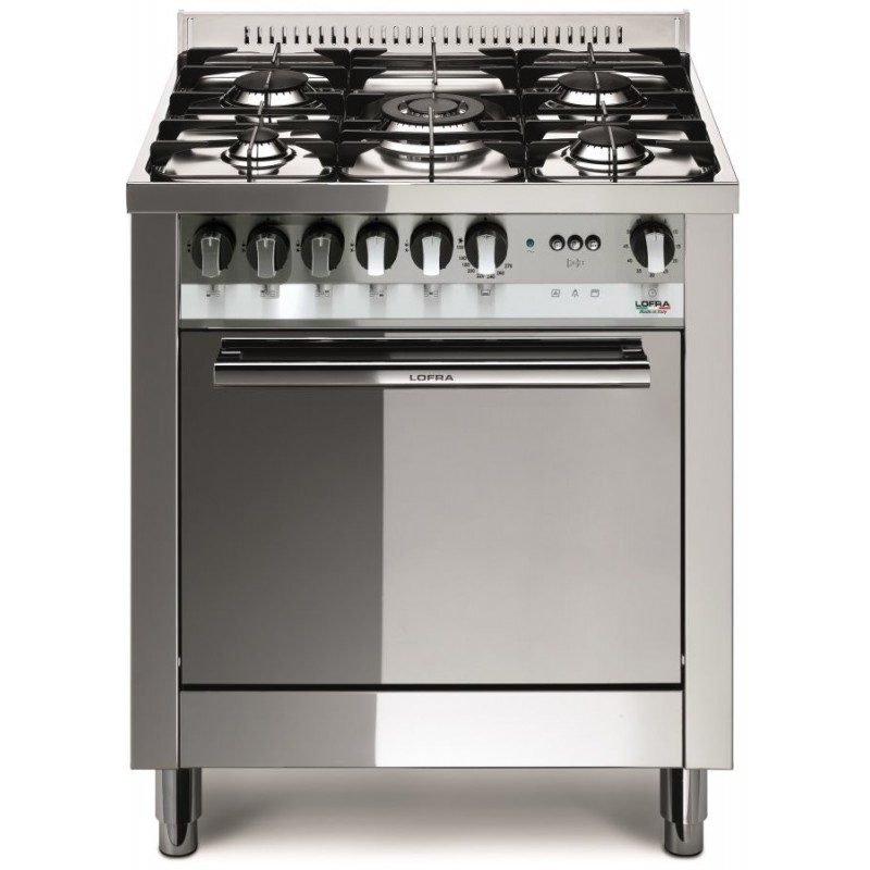 Lofra M76GV/C. Tipo de producto: Cocina independiente, Color del producto: Acero inoxidable, Tipo de control: Giratorio. Tipo de quemador: Encimera de gas, Tipo de encendido electrónico: Encendido con una mano, Posición del quemador/zona de cocción 1: Left front. Tamaño del horno: Medio, Fuente de alimentación del horno: Eléctrico, Capacidad bruta del horno: 66 L. Tipo de temporizador: Mecánico. Clase de eficiencia de energía: A, Consumo de energía (convencional): 1,74 kWh
