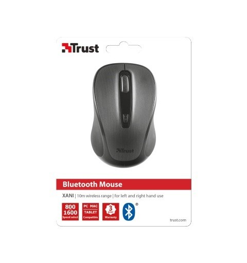 Trust 21192, Ambidextro, Óptico, Bluetooth, 1600 DPI, Negro
