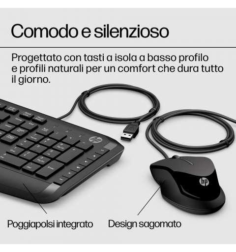 HP Pavilion Teclado y ratón 200, Completo (100%), Alámbrico, USB, Negro, Ratón incluido