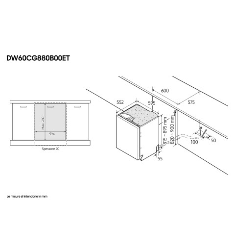 Samsung DW60CG880B00ET. Tipo de instalación: Completamente integrado, Talla del producto: Tamaño completo (60 cm), Tipo de control: Tocar. Número de cubiertos: 14 cubiertos, Clase de emisión de ruido: B, Nivel de ruido: 43 dB. Clase de eficiencia de energía: A, Consumo de agua por ciclo de lavado: 7,9 L, Consumo de energía por 100 ciclos: 49 kWh. Ancho: 595 mm, Profundidad: 552 mm, Altura: 815 mm. País de origen: Tailandia