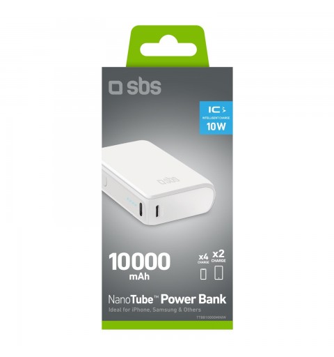 SBS NanoTube, 10000 mAh, Ión de litio, 10 W, Blanco
