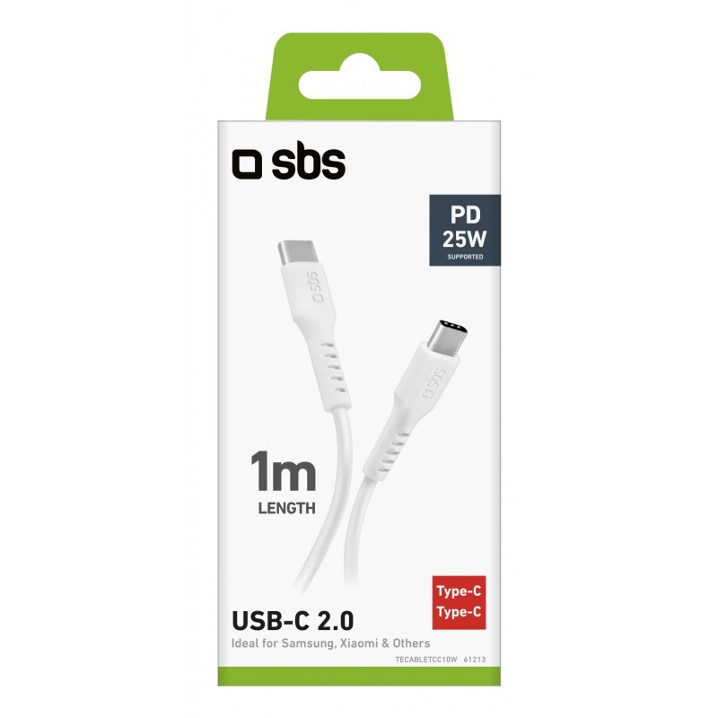 SBS TECABLETCC10W, 1 m, USB C, USB C, USB 2.0, 0,48 Gbit/s, Blanco