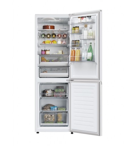 Haier 2D 60 Series 5 Pro HDPW5618DNPW. Capacidad neta total: 352 L. Bisagra para puerta: Derecho. Clase climática: SN-T, Nivel de ruido: 35 dB. Frigorífico, capacidad neta: 235 L, Antiescarcha (nevera), Sistema multi-flujo de aire (nevera), Luz interior de la nevera. Congelador, capacidad neta: 117 L, Capacidad de congelación: 10 kg/24h, Antiescarcha (congelador). Compartimiento de zona fresca. Clase de eficiencia de energía: D, Consumo de energía anual: 214 kWh. Color del producto: Blanco