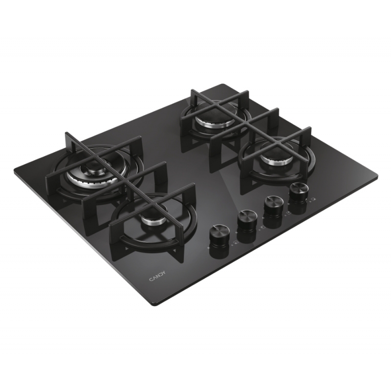 Candy Moderna CVG6BR4WTB, Negro, Integrado, 60 cm, Encimera de gas, Vidrio, 4 zona(s)