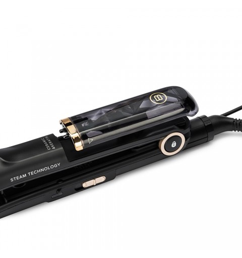 Bellissima Steam Ceramic & Keratin, Plancha de pelo, Vapor, Barra de desplazamiento, 170 °C, 230 °C, Negro, Oro