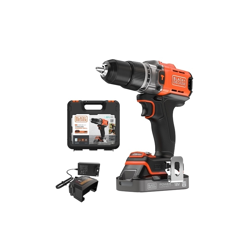 Black & Decker BCD383D1XK-QW, Taladro de pistola, Naranja, 1,3 cm, Batería, 2 Ah, 18 V