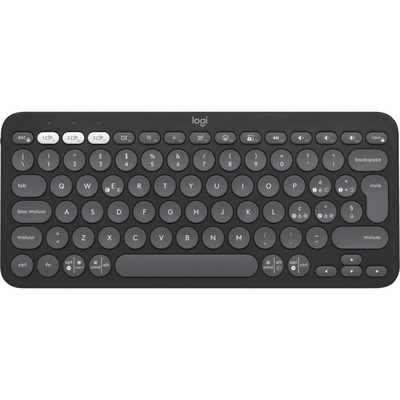 Logitech Pebble Keys 2 K380s, Mini, RF sans fil + Bluetooth, Commutateur de touche « ciseaux », QWERTY, Graphite
