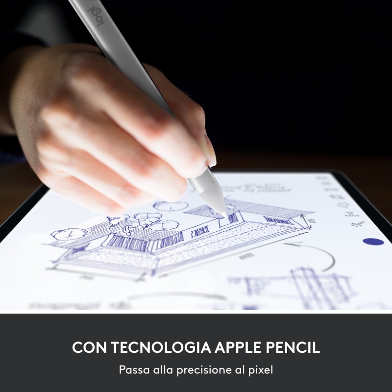 Logitech Crayon, Tablette, Apple, Argent, Blanc, Intégré, Lithium