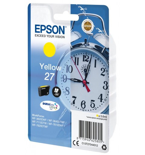 Epson Alarm clock Cartouche "Réveil" 27 - Encre DURABrite Ultra J, Rendement standard, Encre à pigments, 3,6 ml, 300 pages, 1 pièce(s)