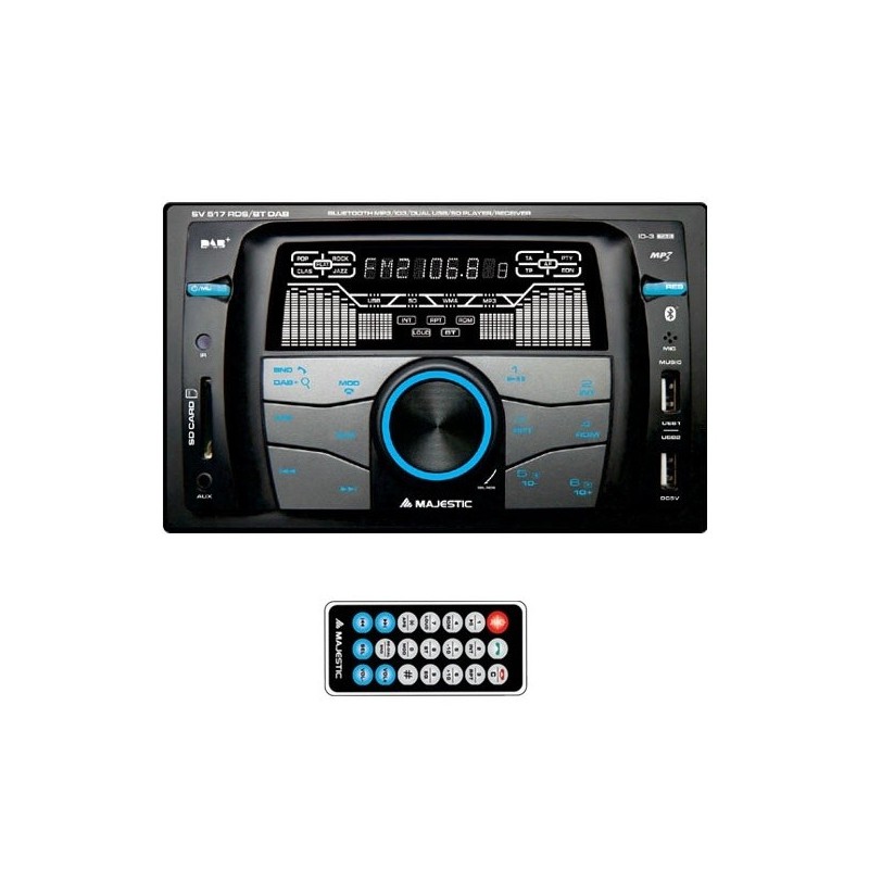 New Majestic SV-517 RDS BT DAB, Noir, 2 DIN, 180 W, 4.0 canaux, 45 W, Rotatif