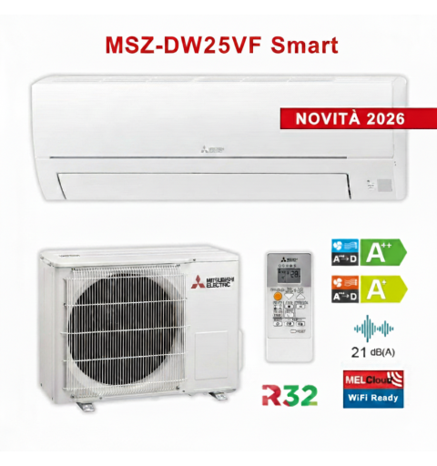 Climatiseur monosplit mural inverter avec pompe à chaleur (R32), idéal pour des pièces d’environ 15–25 m². Wi-Fi en option / prêt pour Wi-Fi.