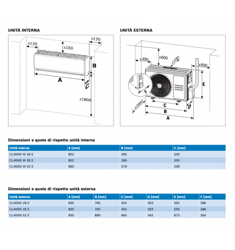 | Unité intérieure (L x P x H) | 802 x 200 x 295 mm |