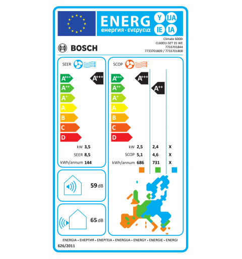 BOSCH Climate 6000i CL6001i-Set 35 WE Climatiseur Monosplit 12000btu 3,5Kw A+++/A++ Prêt WiFi R32