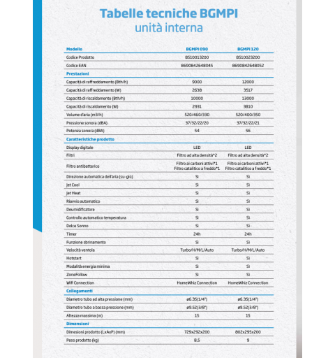 Classe d ' efficacité énergétique saisonnière (Raffrescamento) A++