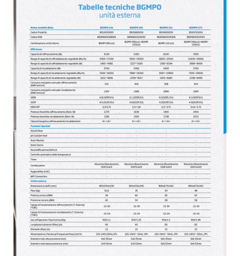 Beko BGMPO 271 Set Climatiseur TrialSplit Evolutio 9+9+12Btu BEMPI 095-095-125 A+/A+ WiFi Inverter R32 White