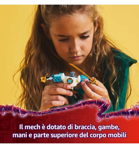 Robot articulé – La super armure robot de Zane est dotée de bras, de jambes et de mains mobiles, d’un haut du corps qui pivote à 360°, d’un torse qui s’ouvre pour placer une minifigurine à l’intérieur et de 2 grands sabres