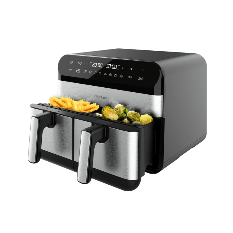 Cecotec Advance 9000, Friteuse d’air chaud, 9 L, 30 °C, 200 °C, Double, Noir, Acier inoxydable