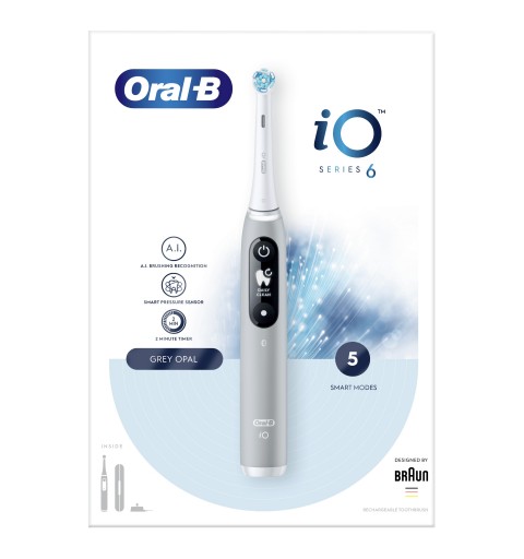 Oral-B iO 80351524, Adulte, Brosse à dents vibrante, Soin quotidien, Soins des gencives, Pouls, Doux, Blanchiment, Gris, 2 min, Grey Opal