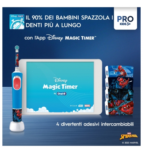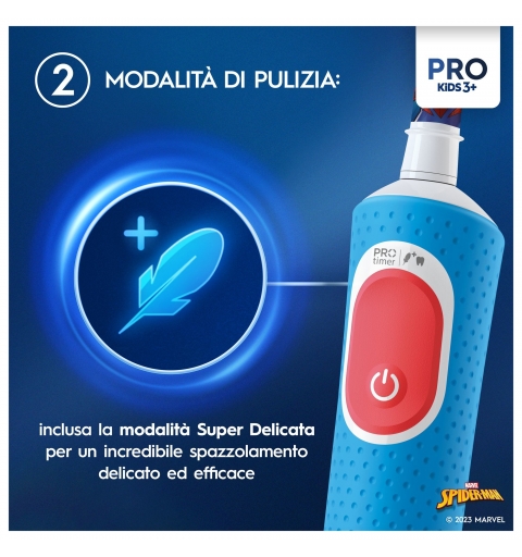 Oral-B Vitality Pro Kids Spiderman, Enfant, Brosse à dents rotative oscillante, Soin quotidien, Sensible, Super sensitive, Bleu, Rouge, 7800 mouvements par minute, 4 x 30 sec