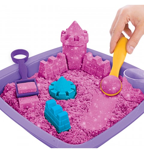 Kinetic Sand Shimmer, Coffret Château de sable scintillant avec 453 g de scintillant rose, 3 moules et 2 outils, Rose, 3 an(s), Garçon/Fille