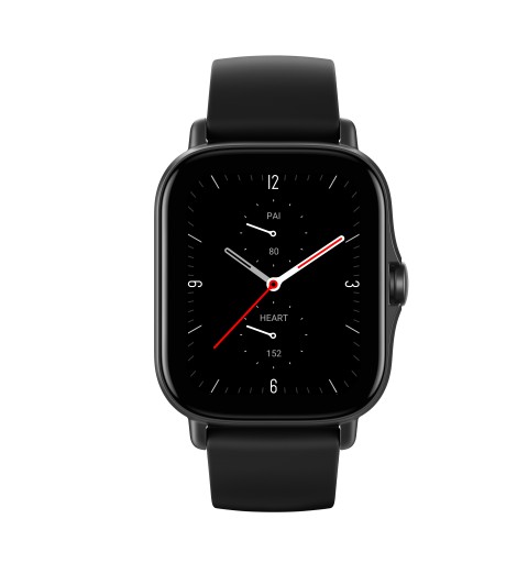 Amazfit GTS 2. Taille de l'écran: 4,19 cm (1.65"), Type d'écran: AMOLED, Résolution de l'écran: 348 x 442 pixels, Écran tactile. Wifi. GPS (satellite). Capacité de la batterie: 246 mAh. Poids: 24,7 g. Matière de la bande: Silicone, Couleur du bracelet: Noir. Système d'exploitation installé: RTOS